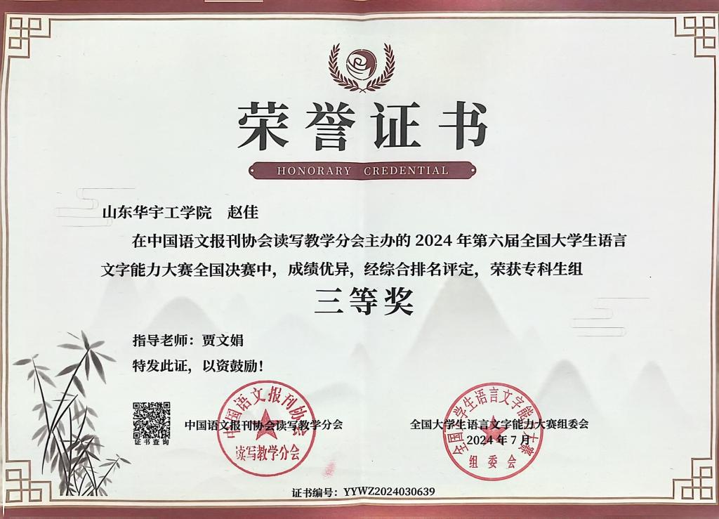 近日,第六届“全国大学生语言文字能力大赛”全国决赛落下帷幕,我校赵佳同学取得了国赛三等奖的好成绩,实现了2026世界杯官网在该类比赛中的新突破。