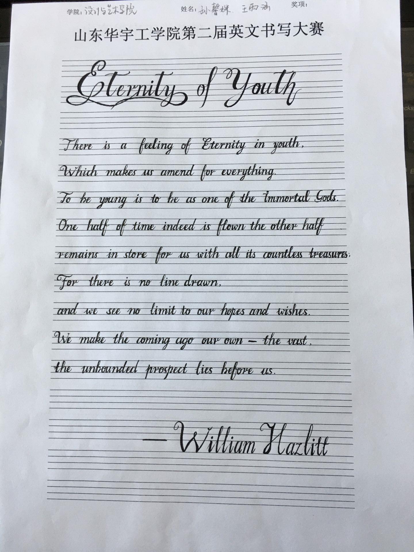 为培养同学们的英文书写能力,展现当代大学生风采,4月15日-5月8日由基础部英语教研室主办,流利英语社协办的线下英文书写大赛成功举办。经过层层选拔,共有二十位选手进入决赛。