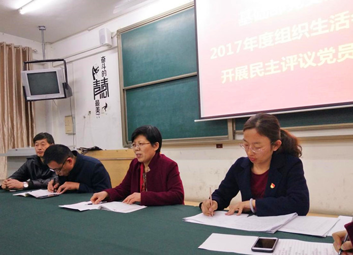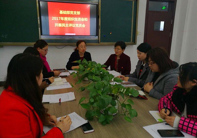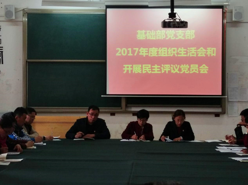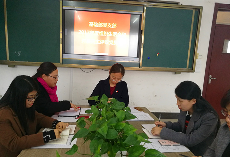 为进一步深入学习贯彻习近平新时代中国特色社会主义思想和党的十九大精神,牢固树立“四个意识”,坚定“四个自信”,提升基层党组织组织力,查找纠正“四风”突出问题,基础部党支部按照党章规定和校党委《关于召开2017年度党支部组织生活会和开展民主评议党员工作的通知》(鲁华宇院党字【2018】4号)部署要求,于2018年3月22日16:30在10号楼213室召开了基础部党支部2017年度组织生活会和开展民主评议党员工作会议。会议由支部书记李琦主持,支部31名党员参加会议,学校党委组织委员张帆同志全程督导。