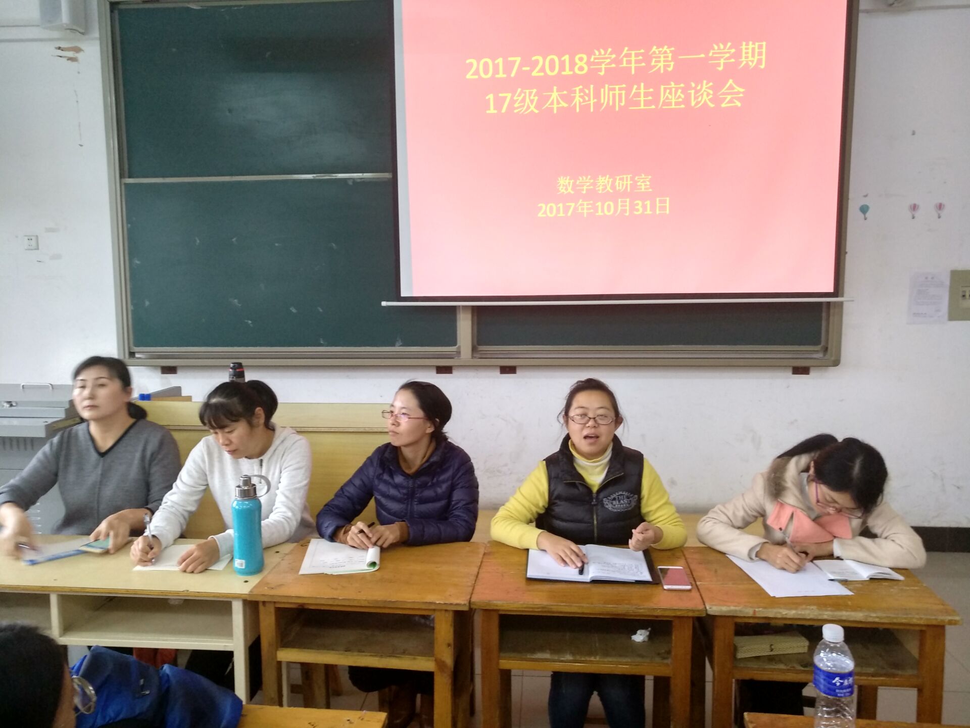 为倾听学生心声,了解教师教学情况,提高教学质量,数学教研室于10月31日(10#213)、11月1日(22#105、10#213),分别召开了本科组、专科组与五高组三场师生座谈会,征求学生对数学课程教学工作的意见。