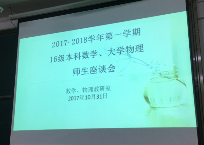 10月31日下午5点,数学物理期中师生座谈会在十号楼214举行,活动由数学教研室主任闫佩玉和物理教研室主任解振平主持,全体数学物理任课教师参加了此次活动。
