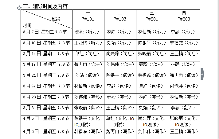 会上,首先确定了辅导方案及辅导内容。此次竞赛辅导工作将根据竞赛题型按专题组织开展,每周两个专项。辅导内容分别为:听力、语法、词汇、完型、阅读、翻译、文化、IQ测试、写作。为更有针对性开展辅导工作,根据人数将报名学生分成一、二、三、四班,四个班级辅导工作同时进行。会中,对各位老师所负责专项及辅导时间进行分配,并制定出合理的辅导时间安排。最后,各位老师对辅导工作分别提出可行建议,为竞赛辅导顺利开展献计献策。此次赛前辅导专题会议的召开为将要开展的赛前辅导工作指明了方向,也为迎接4月份的全国大学生英语竞赛奠定了基础。 全国大学生英语竞赛是经教育部有关部门批准举办的全国唯一的大学生英语综合能力竞赛活动。竞赛面向全国各高校各类学习英语的大学生,大学生可自愿报名参赛,提倡“重在参与”精神。开展此项竞赛活动,有助于全面展示全国各高校各类英语教学水平和教学改革的成果,有助于学生夯实和扩展英语基础知识和基本技能,全面提高大学生英语综合运用能力。