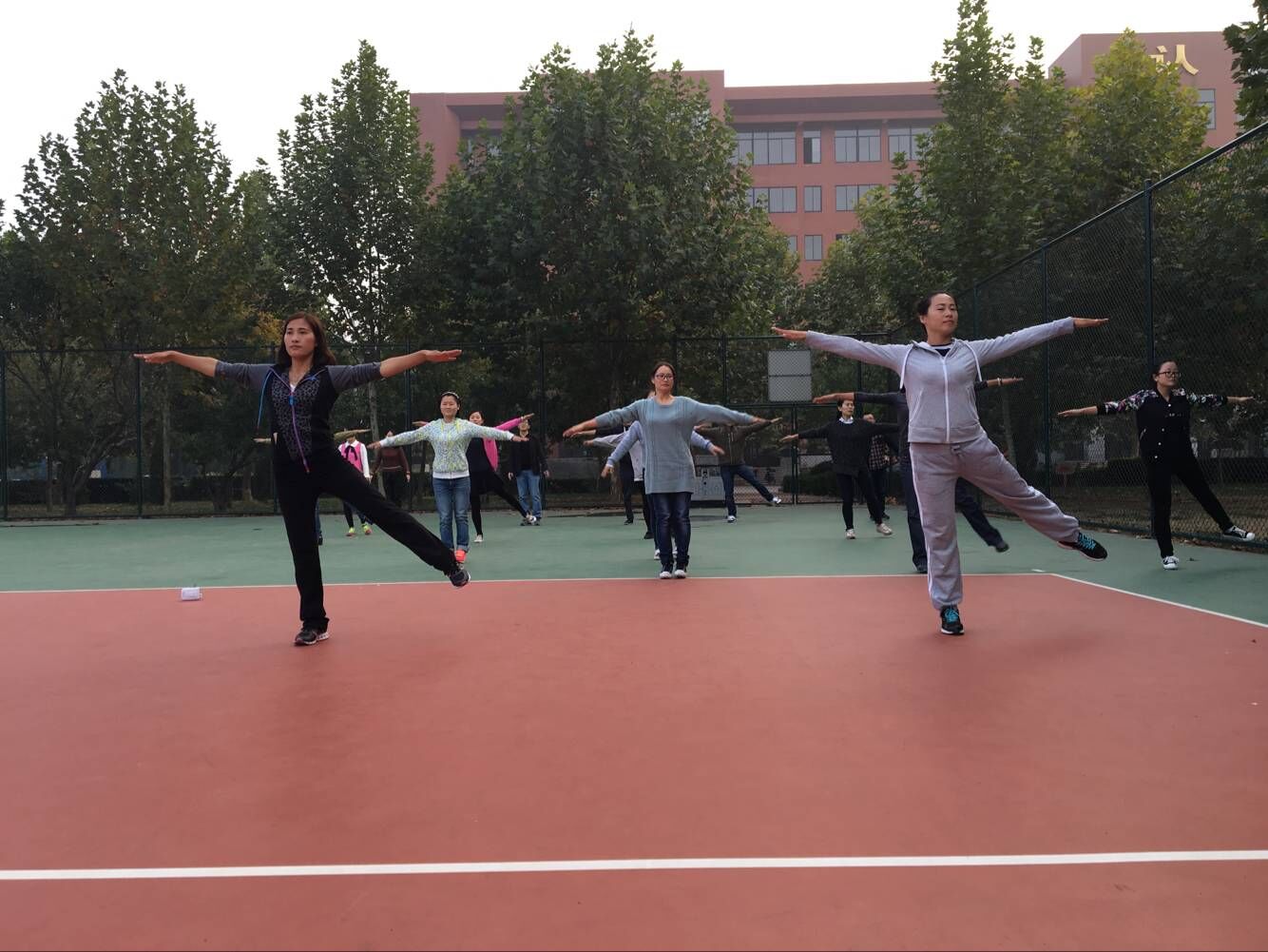 为了更加顺利有效地推广普及“第九套广播体操”,大学体育部负责开办“短期培训班”,主要由于洋、王平两位体育教师负责,各职能部门、教学单位结合实际情况选派1—2名职工参加学校培训班,培训时间在每天下午4:00—6:00。