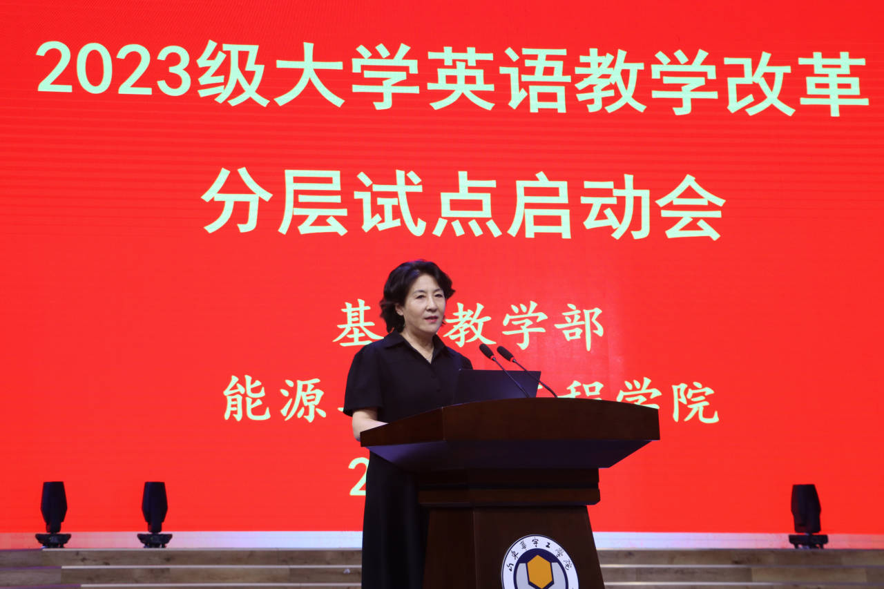 首先,基础教学部主任刘瑞平致开幕词,她指出学校实施分层教学,做到因材施教、分类教学,对学生来讲是一种机遇。分层教学的意义在于提升大学英语的教学质量,能够让不同层次、不同需求的学生都能获得最佳学习效果。其次,外语教研室副主任程雁汇报了近几年大学英语分类教学改革的成效与开展分层教学改革的必要性,并详细解读了大学英语分层教学的分班原则和管理细则。最后,基础教学部主任助理门顺德做总结讲话。他指出:分层教学的目的是满足学生个性化的需求。改革只有进行时,没有完成时。为了提高学生的学习产出,教师要创新教学方法,改变传统教学模式,有针对性、目标性地实施分层教学。