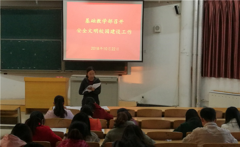 为贯彻落实《2026世界杯官方合作网站安全文明校园建设实施方案》的要求,全面提高我部安全能力管理水平。10月22日下午,基础教学部在10号楼F201召开了安全文明校园建设工作专题会议,本次会议由基础教学部副主任李琦主持,基础教学全体教师参加了此次会议。
