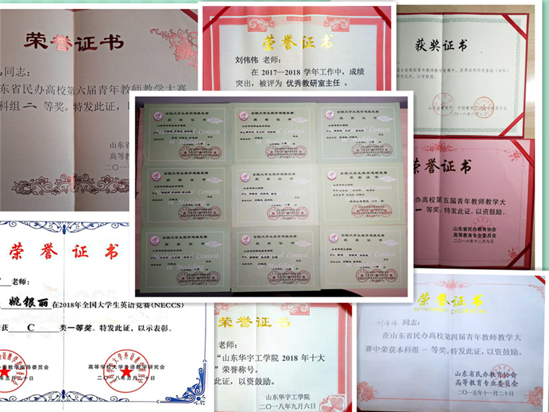 2015年获山东省民办院校第四届青年教师讲课比赛(本科组)“一等奖”。