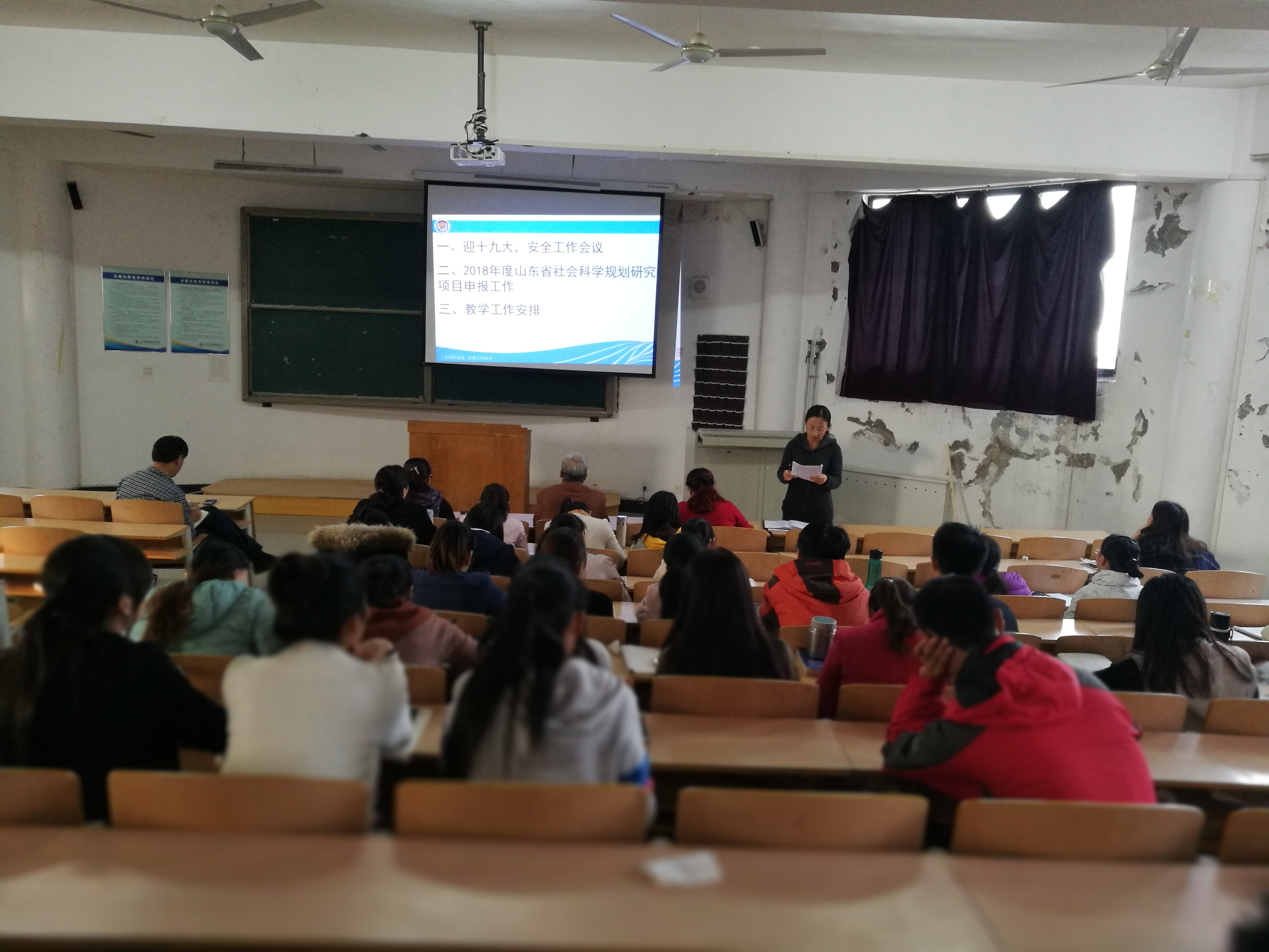 为贯彻落实《关于做好迎接中央党的十九大维稳安保工作集中督导检查准备工作的通知》,进一步做好我部安全稳定工作,10月13日下午四点,我部在10号楼F401召开迎接党的十九大安全稳定工作会议,会议由基础教学部副主任李琦主持,基础教学部全体教职工参加了会议。
